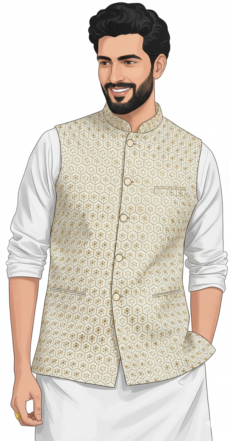 Book a professional tailor to stitch a custom waistcoat designed specifically for kurta pajama.